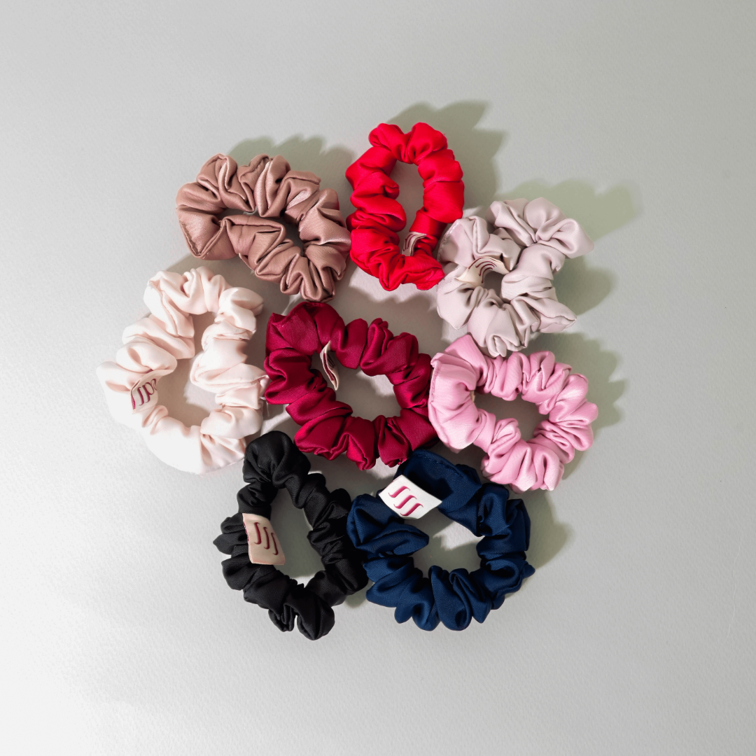 Bambas de satín Mini que previenen el frizz y el quiebre. Su textura suave evita el maltrato y cuida cada hebra. Perfectas para usar de día, de noche o al dormir.