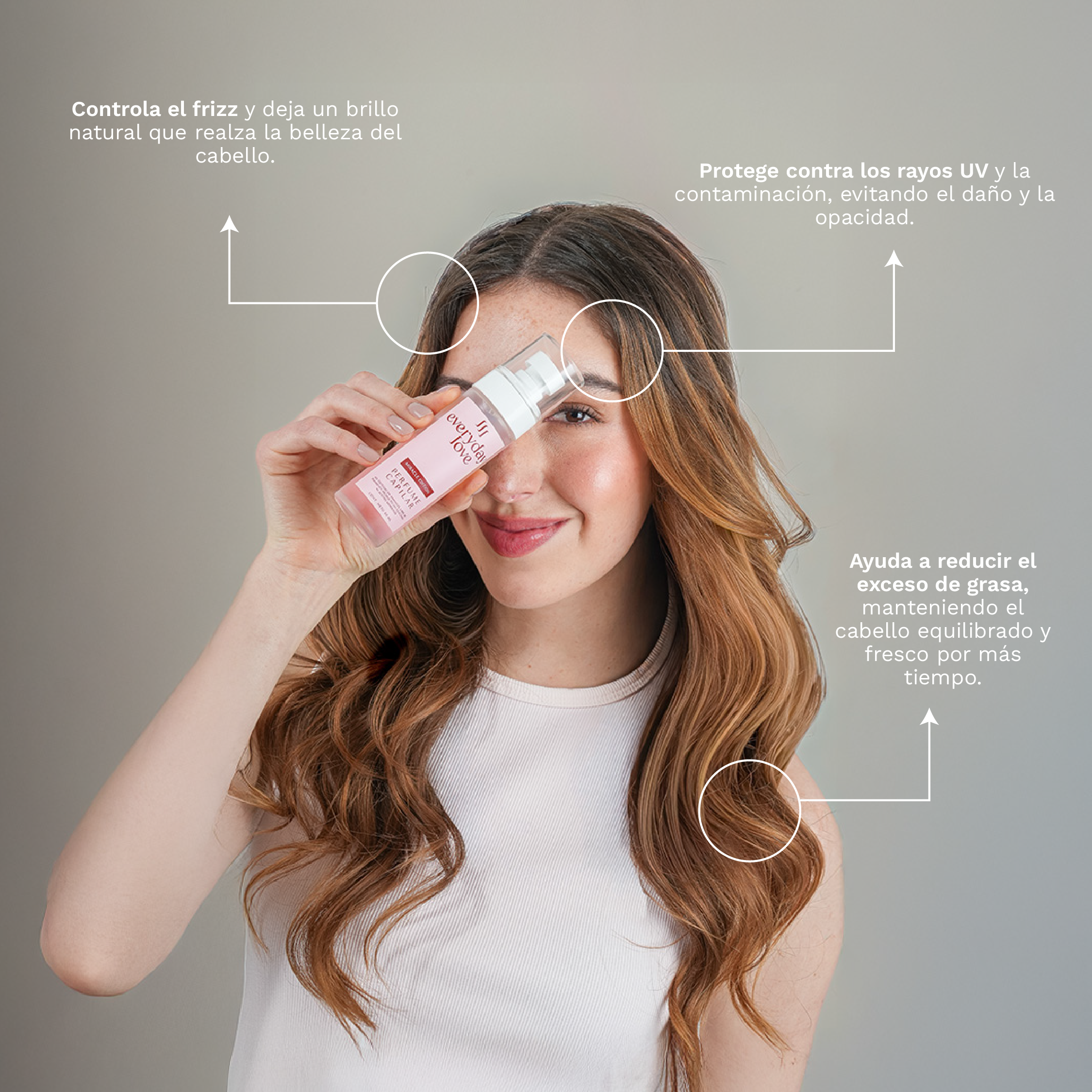 Refresca, protege y perfuma tu pelo al instante. Este perfume ligero controla el frizz, reduce el exceso de grasa y añade un brillo natural con protección UV. ¡Tu pelo siempre listo y con un aroma irresistible!