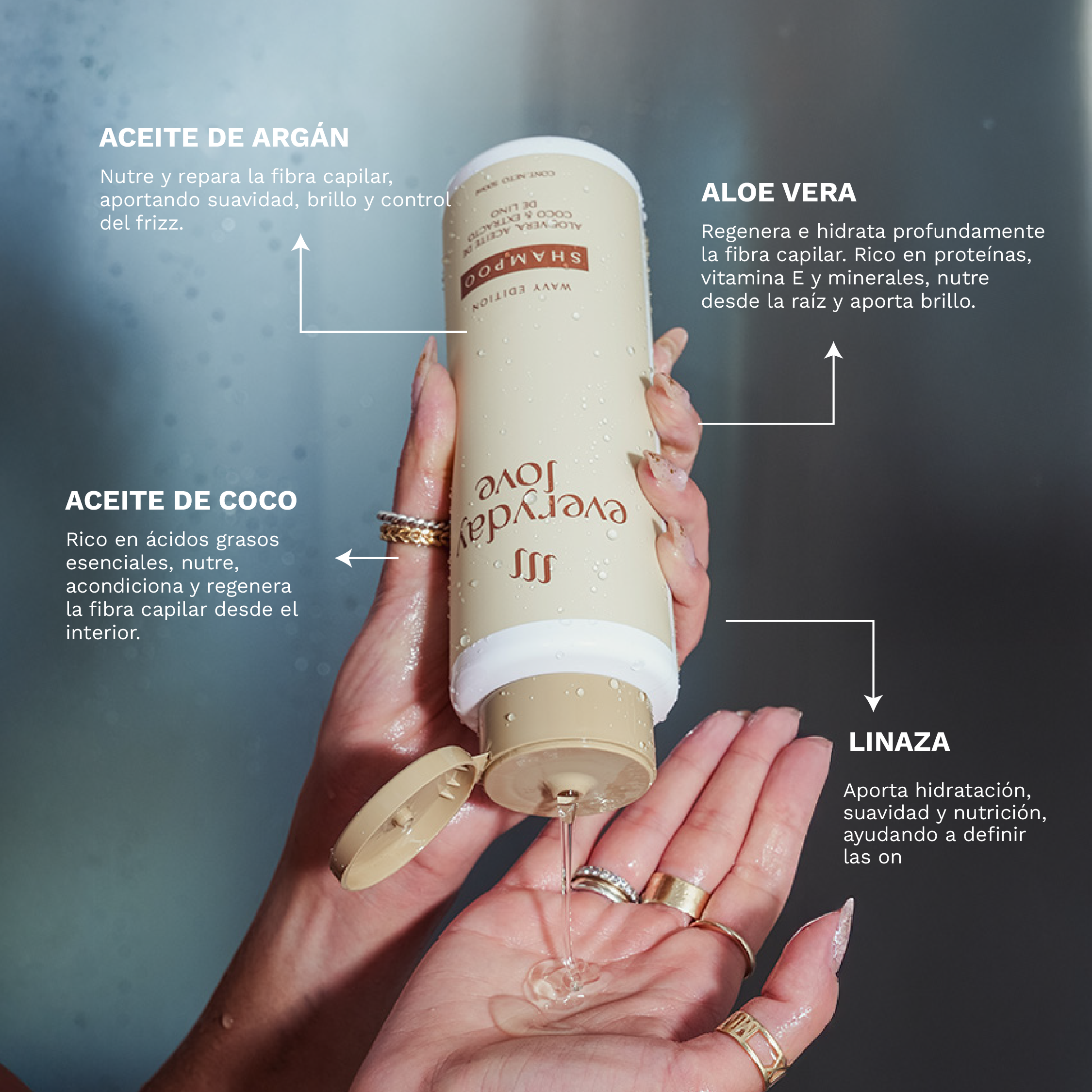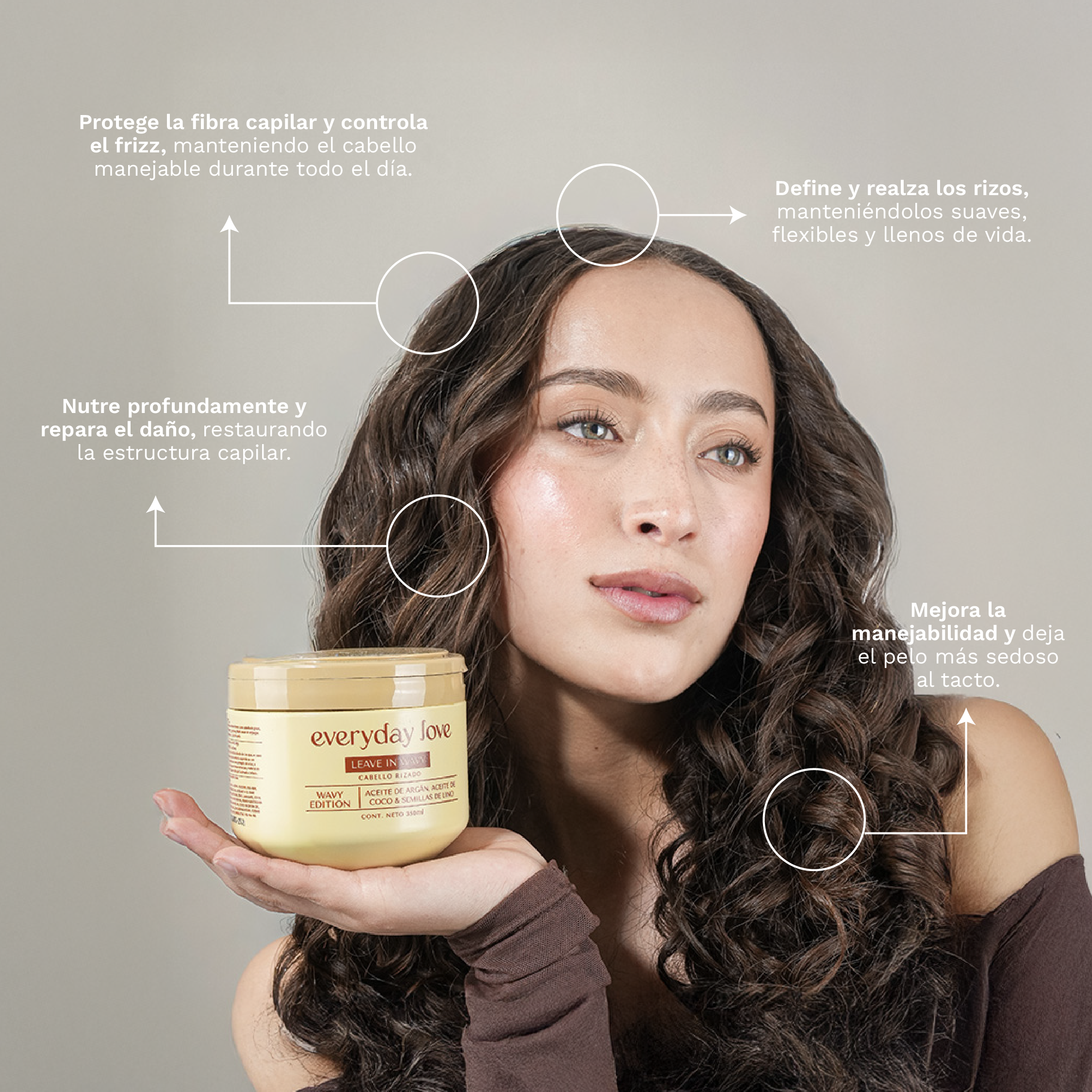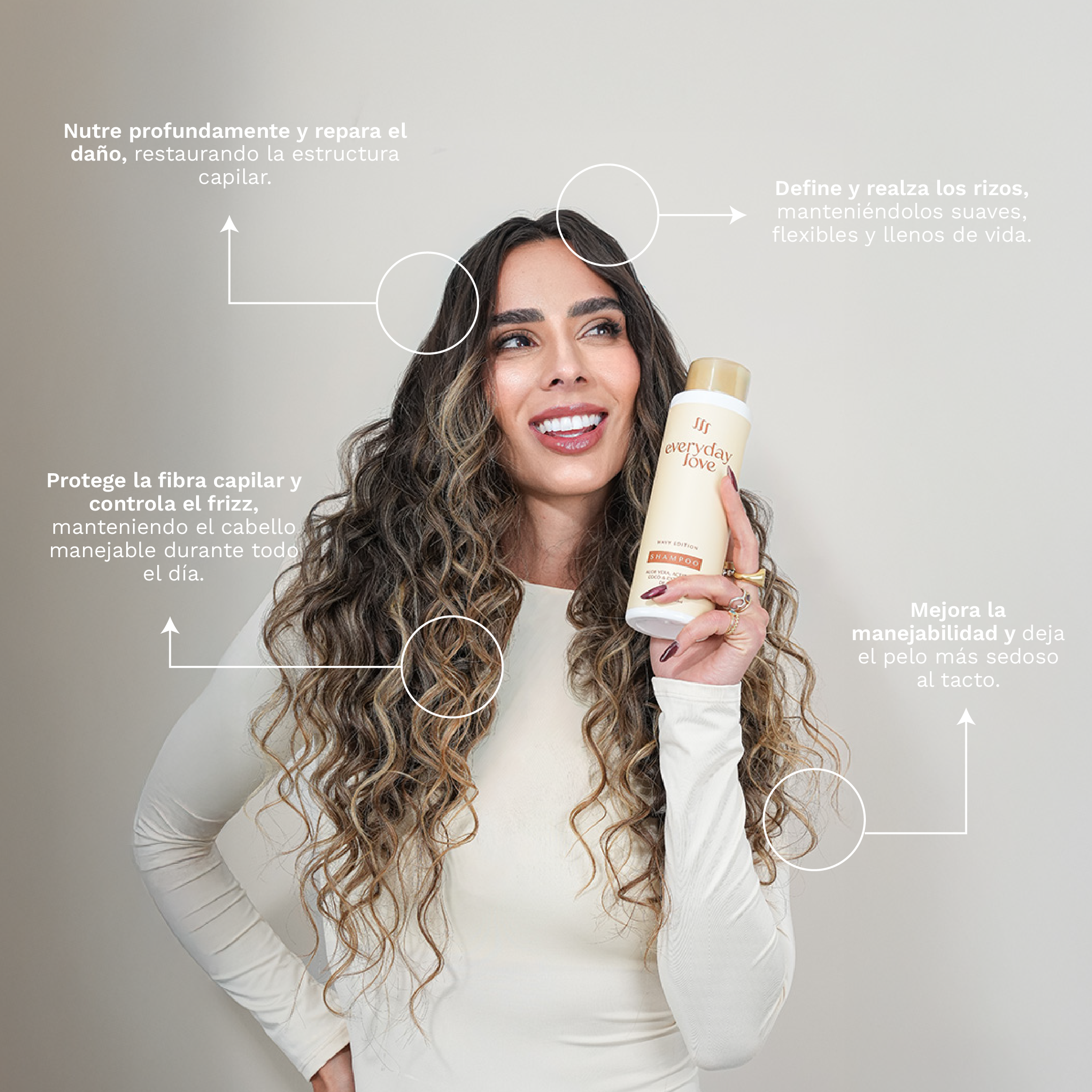 Hidratación, definición y suavidad para rizos y ondas reales. Una rutina completa pensada para resaltar la belleza natural de tu textura. Esta línea capilar, compuesta por shampoo, acondicionador y leave-in, limpia suavemente, nutre profundamente. Ideal para cabellos rizados y ondulados.